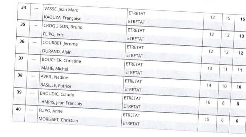 RESULTATS DELA DERNIERE COMPETITION BRUT
